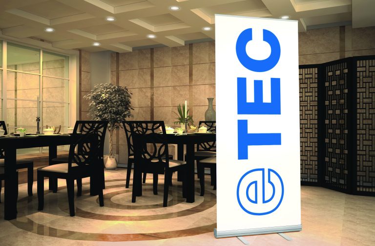 eTEC Superflat roll up film 300 is suitable for roll up displays, hanging graphics and outdoor posters.